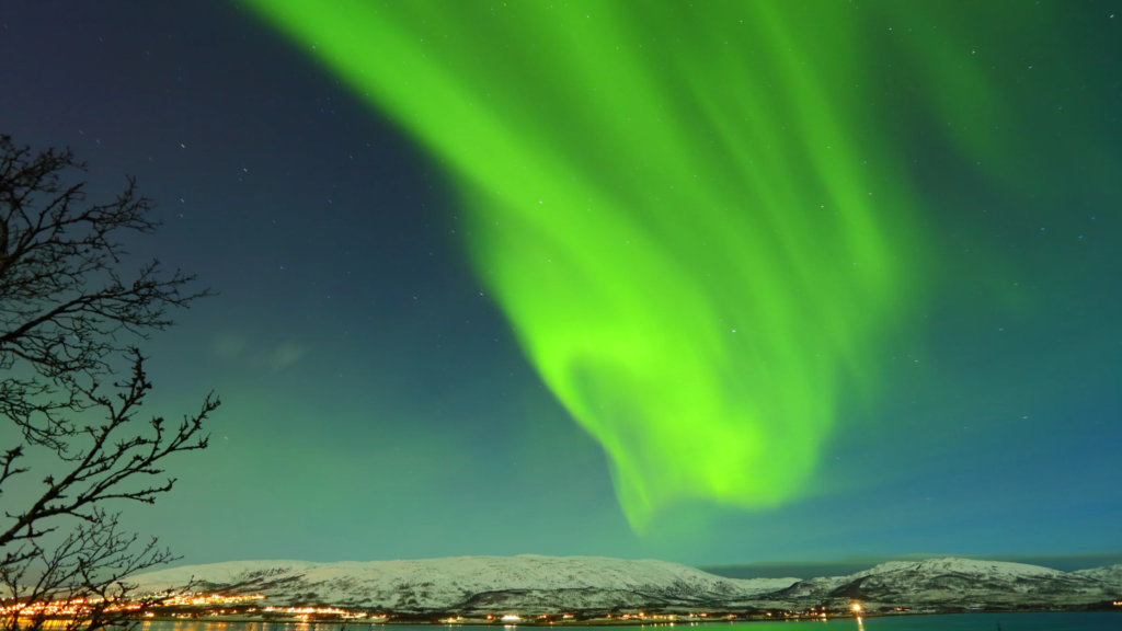 緑や紫の光がカーテンのように広がり、まるで空が踊っているみたい。