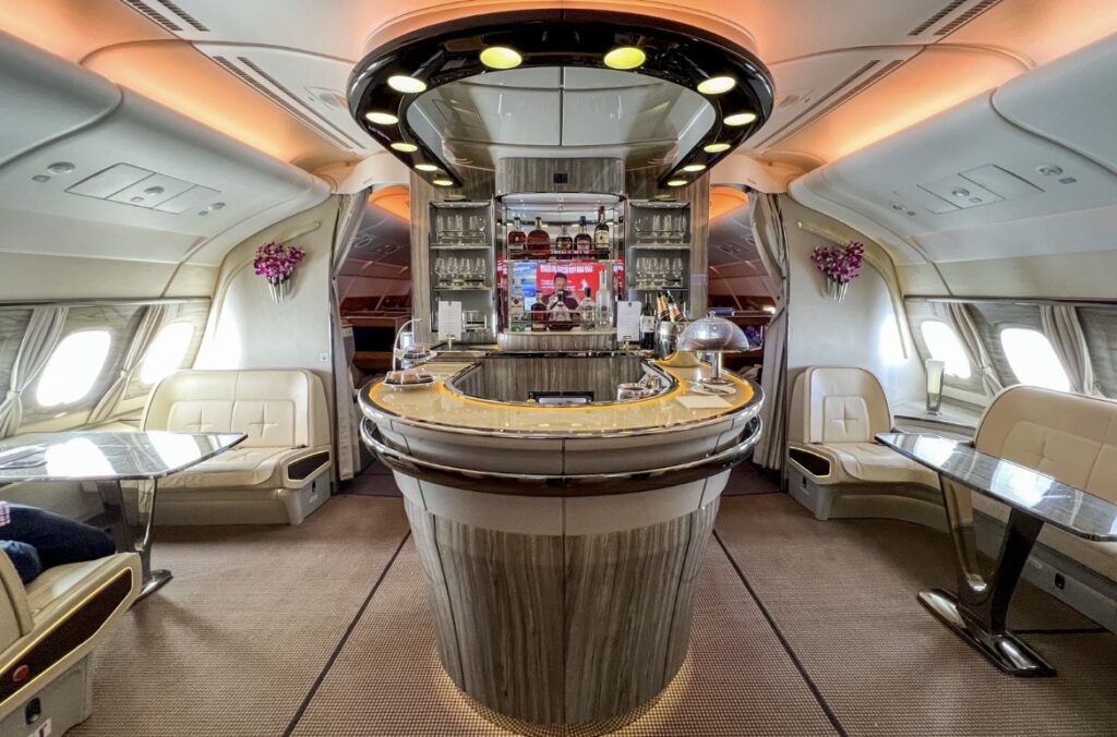 代表的なのは エミレーツ航空のA380のオンボードラウンジで、ビジネスクラス(+ファースト)利用者が立ち寄れる“機内の社交スペース”として有名。